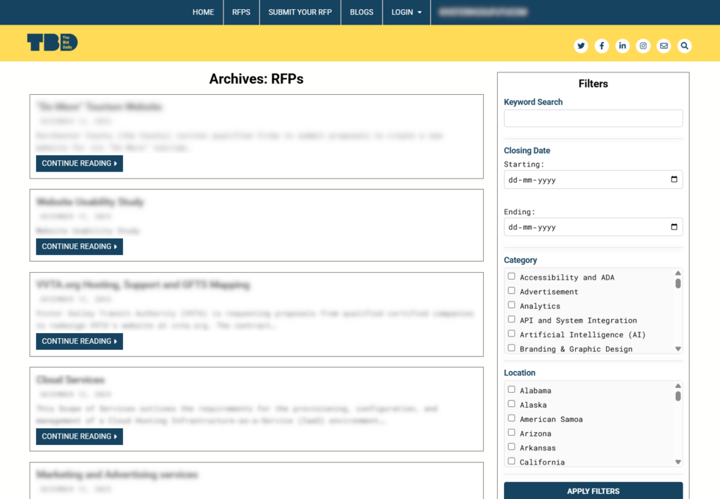 The Bid Daily is a simple, affordable platform that brings together technology and web design RFPs from government and nonprofit sectors in one easy-to-use place. It is created to help freelancers, small businesses, and growing technology vendors quickly find real opportunities without navigating dozens of websites or paying high subscription fees. If you’re looking for accessible, technology and web design RFPs you can actually bid on, The Bid Daily makes the search straightforward.